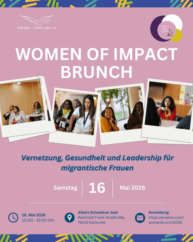SIMAMA-Steh Auf e.V. lädt herzlich ein zum „Women of Impact Brunch 2026: Vernetzung, Gesundheit und Leadership für migrantische Frauen“.