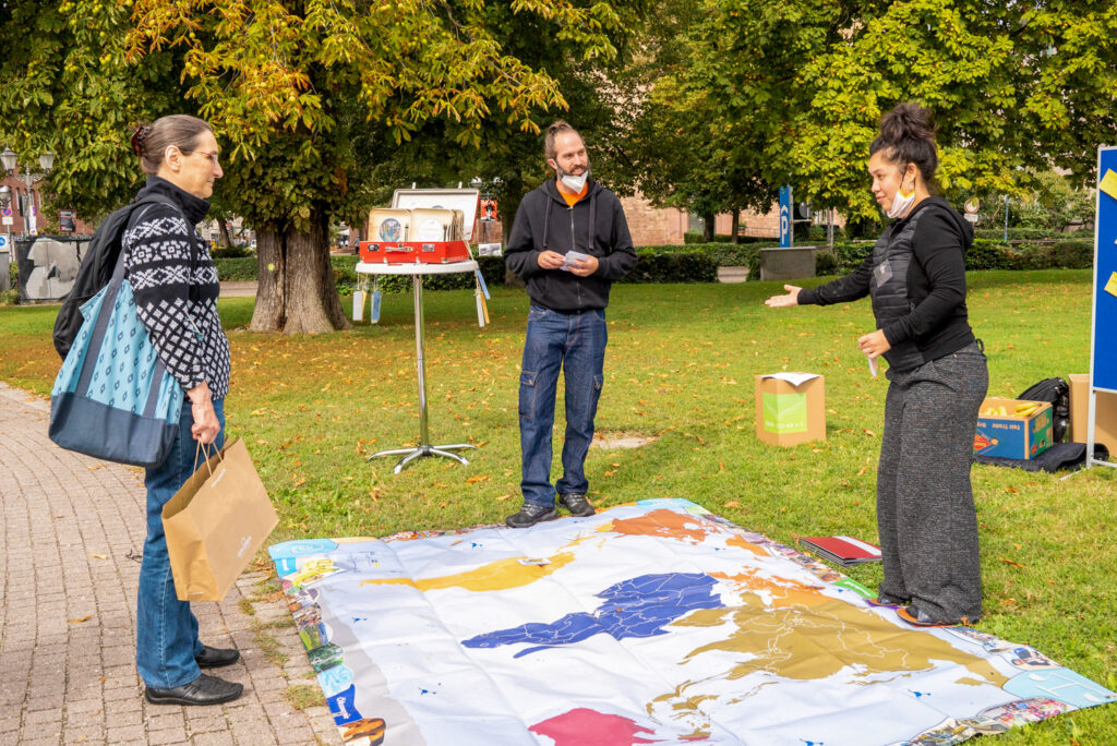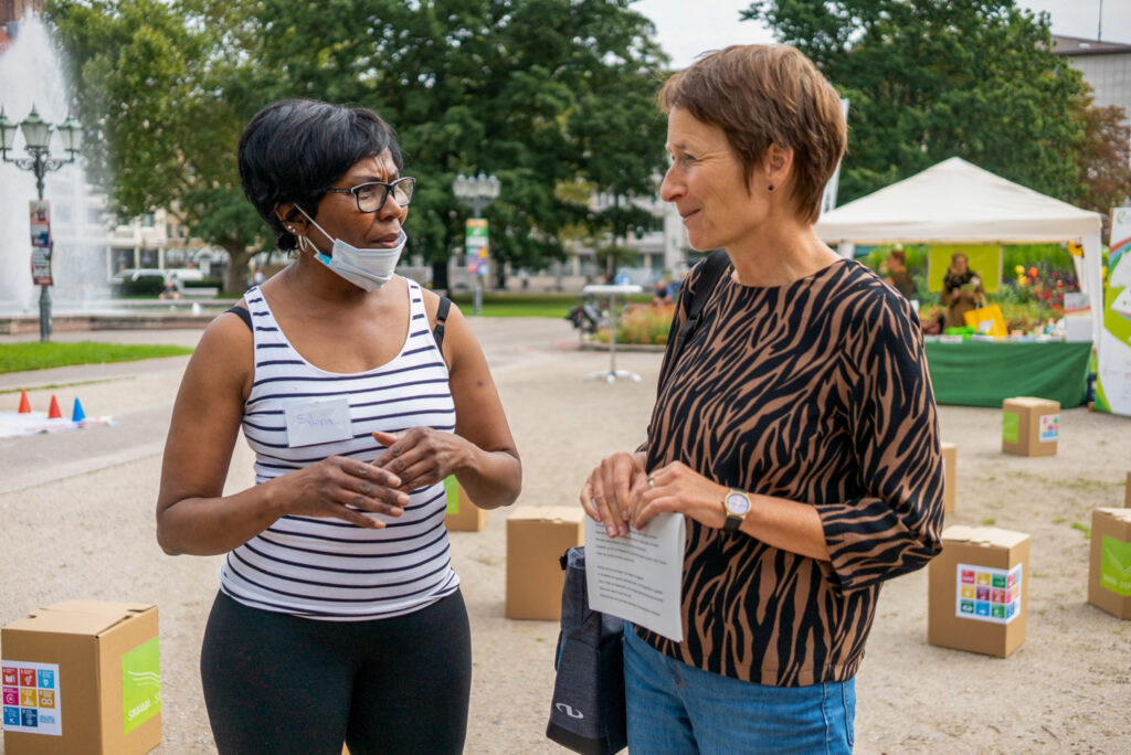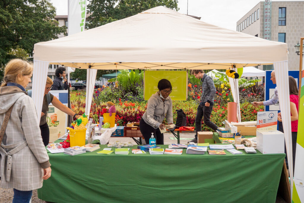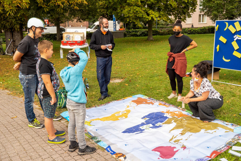 Open-Air Aktionstag für Jung und Alt: Wie wollen wir leben? Nachhaltige Entwicklung bedeutet, die Ressourcen unserer Stadt nicht nur für das eigene Wohl, sondern zum Wohle aller zu nutzen. Ein Lebensstil, der sich für den bewussten Umgang mit Ressourcen einsetzt, beeinflusst nicht nur die Umwelt, sondern trägt entscheidend dazu bei, Armut und Ungleichheit in der Welt zu bekämpfen. Nur wenn in der gesamten Gesellschaft die Nachhaltigkeit in allen wirtschaftlichen, sozialen, politischen und ökologischen Bereichen angemessen berücksichtigt wird, kann von einer nachhaltigen Entwicklung die Rede sein. Was zeigt unser ökologischer Fußabdruck über unseren Lebensstil und die zukünftige Welt? Mit „Rund um den Globus – alles Banane?“ wollen wir die Banane auf ihrer Reise begleitet. Faire Worte! —