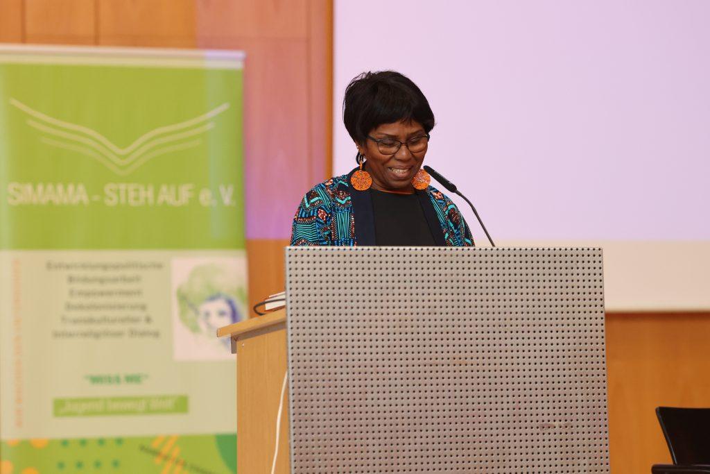 In ihrer Keynote betonte Dr. Elisabeth Kaneza, Voll-Juristin und Gründerin der Kaneza Foundation, die Dringlichkeit der Stärkung der Menschenrechte von migrantischen Frauen in einer Zeit, in der Vielfalt sowohl international als auch national bedroht wird. Sie stellte fest, dass Errungenschaften, die als gesichert galten, rückgängig gemacht werden und Frauen dazu gedrängt werden, traditionellere Rollen einzunehmen. Kaneza reflektierte ihre eigene Geschichte, als sie vor 30 Jahren aus Ruanda nach Deutschland kam, und dankte den Müttern, die oft die mutigen Entscheidungen für ihre Familien treffen.
